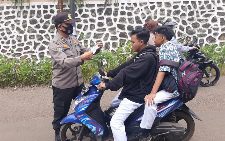 "Masker tetap wajib digunakan, jaga jarak dan hindari penghentian, sering-sering cuci tangan, batasi interaksi dengan orang lain untuk mencegah dan memutus mata rantai penularan Covid-19", kata IPDA Imam Wasito.